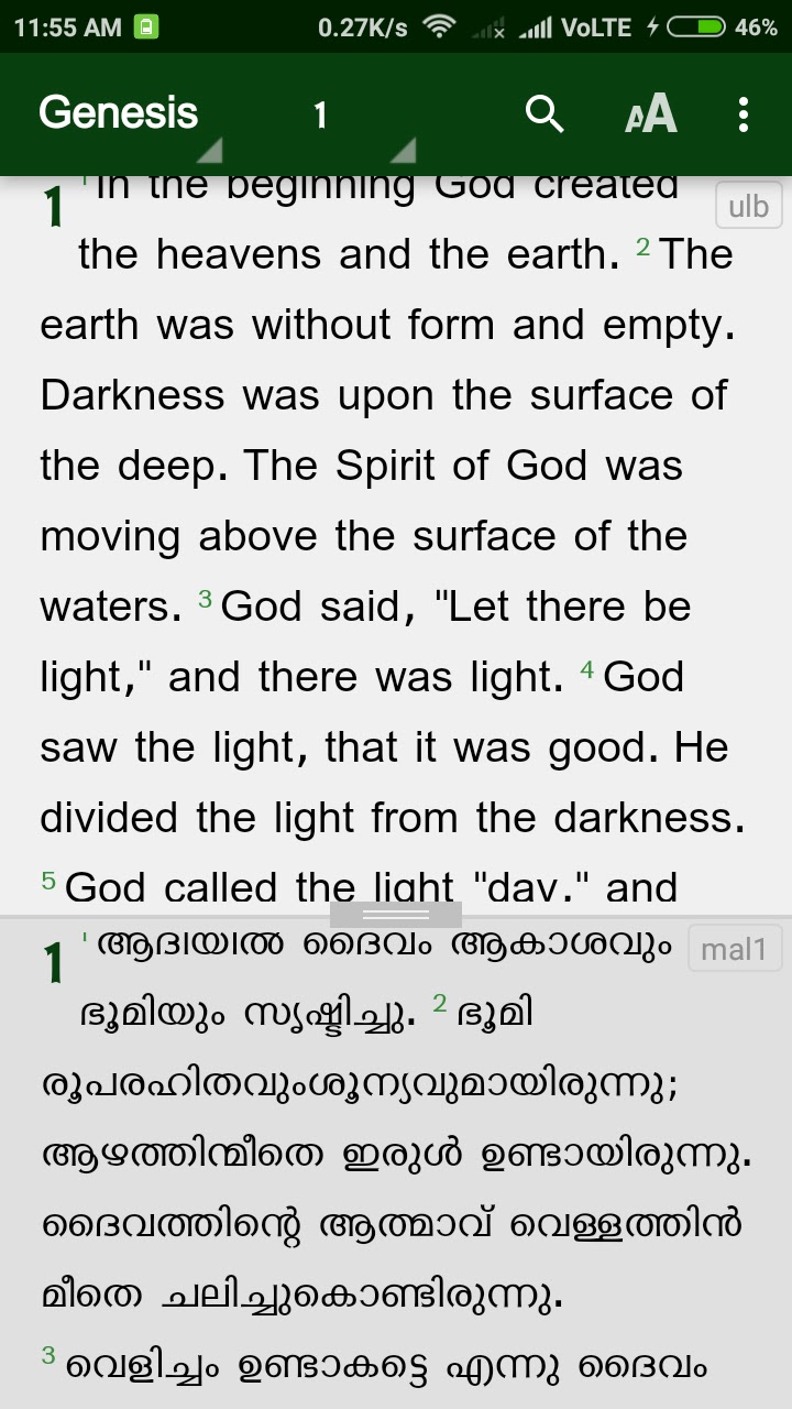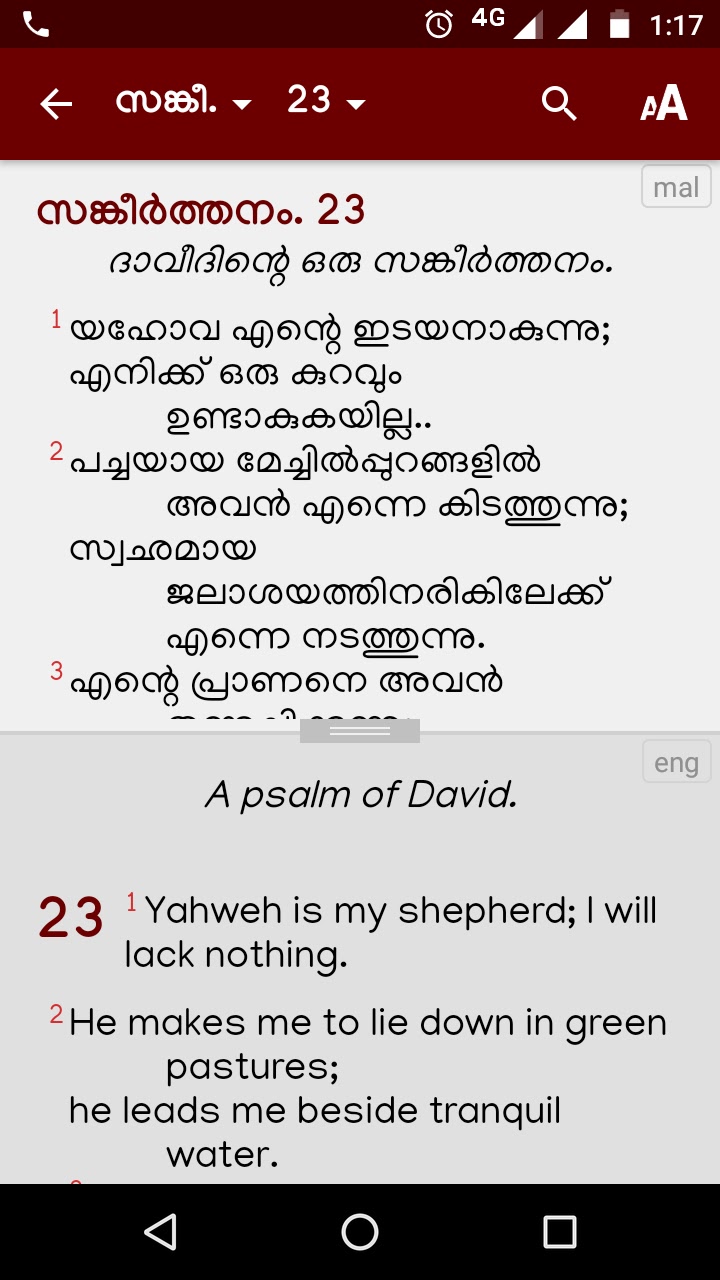 ✔ समानांतर अंग्रेजी बाइबिल (अंग्रेजी और मलयालम बाइबिल छंद दो-फलक या पद्य-दर-कविता लेआउट में प्रदर्शित किए जा सकते हैं)